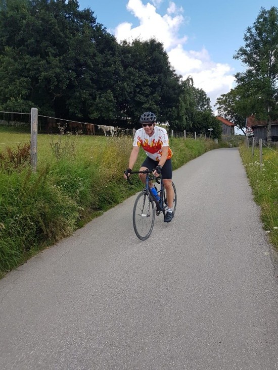 Frank (Jg. 1960) ist ein begeisterter Rennradfahrer, der Sport, Freundschaft und soziales Engagement im Verein „Saerbeck zeigt Herz e.V.“ verbindet.