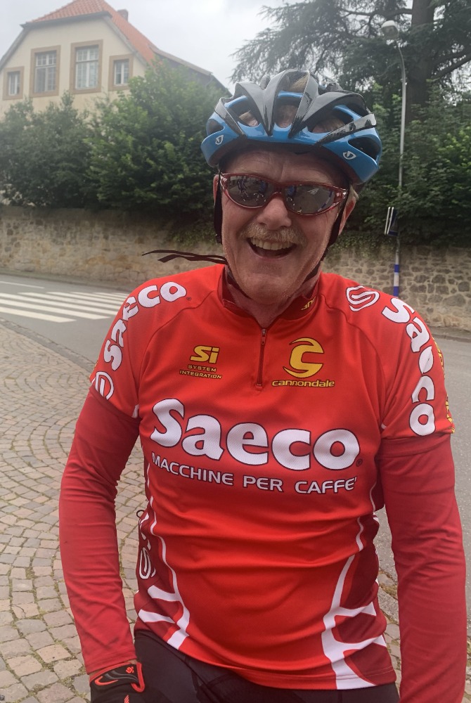 Holger, 62, ehemaliger Leichtathlet aus der Nähe von Osnabrück, lebt seine Begeisterung fürs Rennradfahren als festen Teil seines Alltags und verbindet bei „Saerbeck zeigt Herz“ Sport, Gemeinschaft und guten Zweck.
